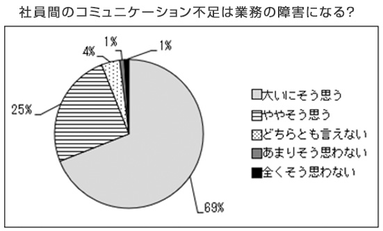 図はHR総研が実施した「社内コミュニケーションに関するアンケート2023」からの抜粋です。「社員間のコミュニケーション不足は業務の障害になると思うか」を聞いています。「大いにそう思う」「ややそう思う」で94%を占めています。