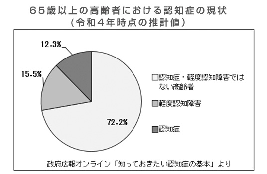 上図によると、3人に1人(27.8%)の高齢者が認知機のに関わる症状を抱えています。毎日の軽い運動やバランスのよい食事を意識することが、認知症リスクを下げる第一歩になります。